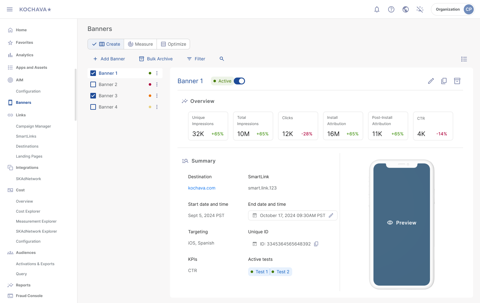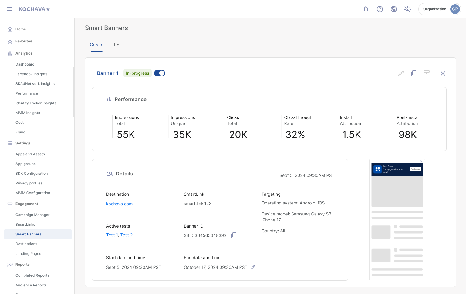 By integrating with SmartLinks, the feature also ensured that banner performance remained tied to Kochava’s attribution and analytics ecosystem.